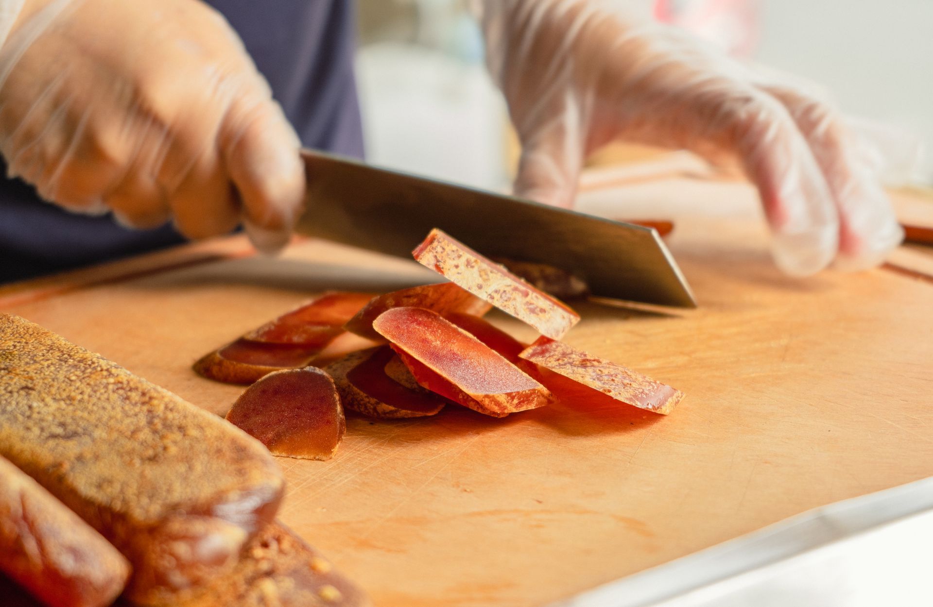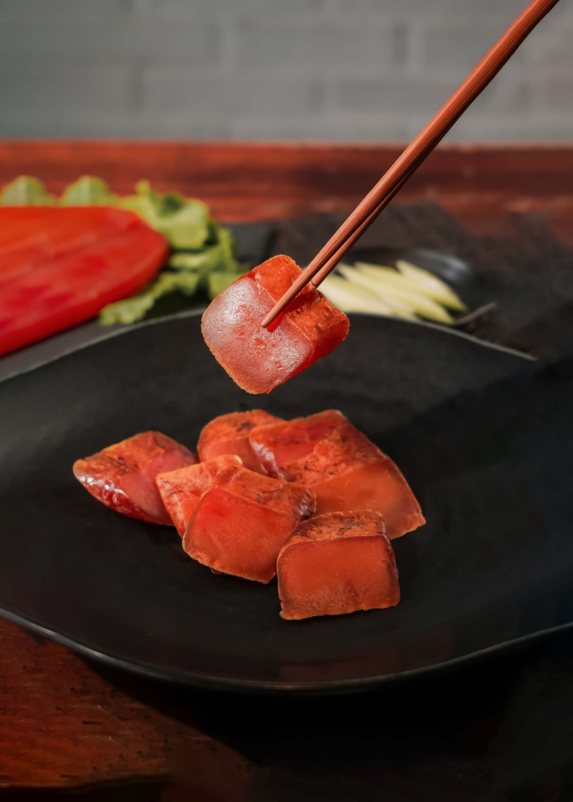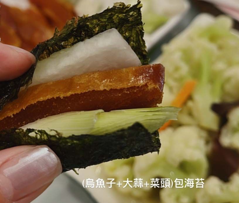 海苔夾著烏魚子、白蘿蔔、大蒜